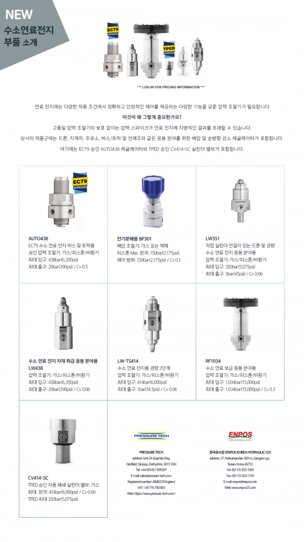 Pressure tech 수소연료전지 부품 소개 페이지 정보 글쓴이 ENPOS 작성일23-04-17 10:46 조회3,391 댓글0 관련링크 Prev Next 목록 본문 해외업체 Pressure tech의 수소연료전지 부품 소개 이미지입니다. Prev Next 목록